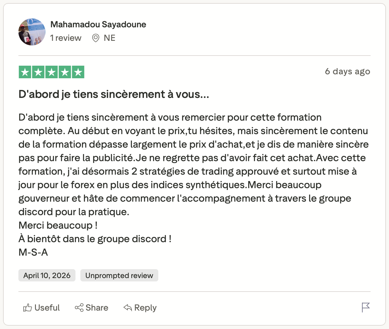 Si tu appliques avec rigueur nos enseignements dans ce programme VPS, voici le type de message que tu nous adresseras dans quelques mois pour nous remercier de t’avoir aidé à sortir de la "Matrice des Perdants" ⬇️