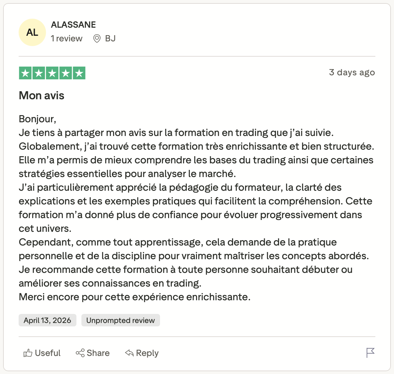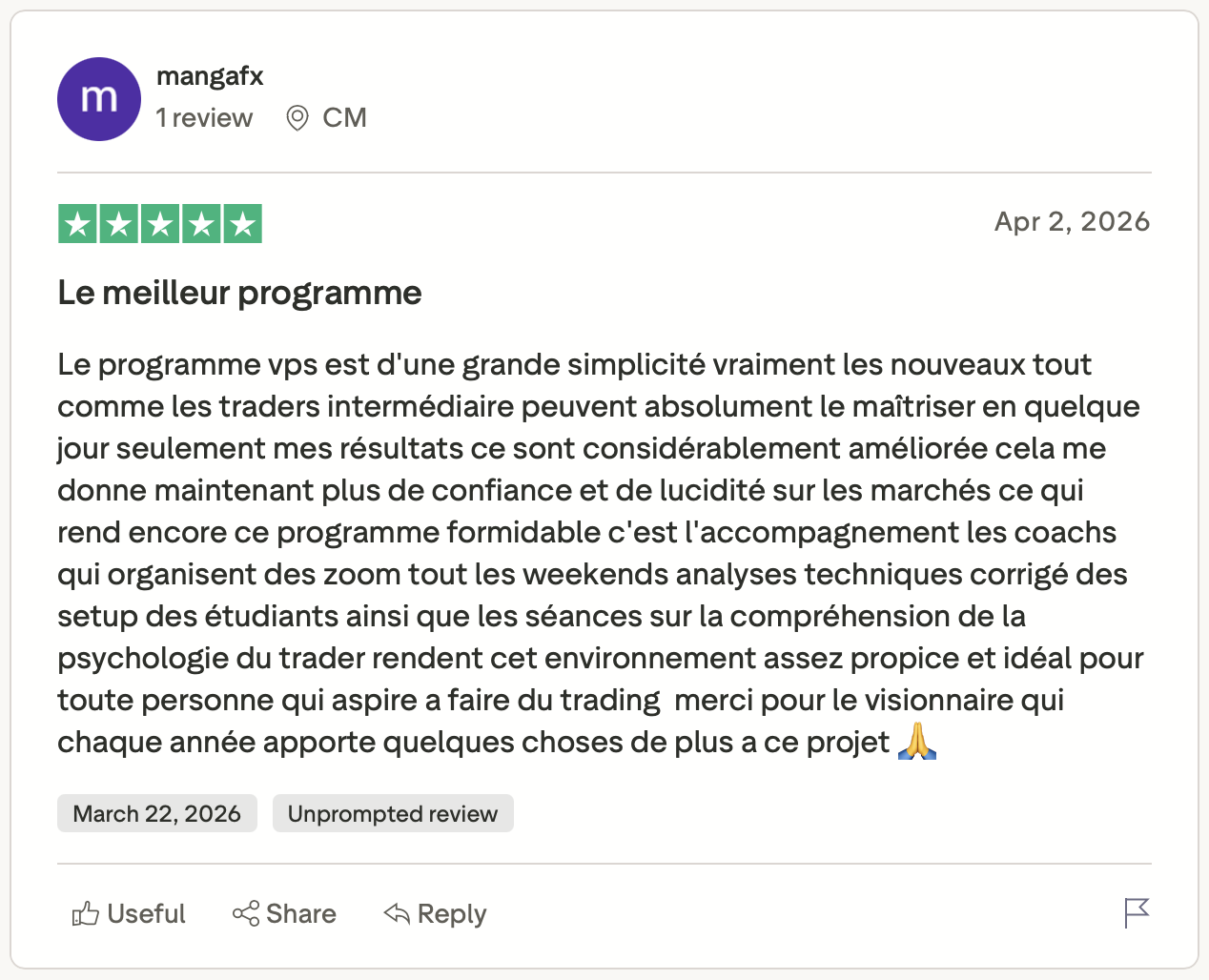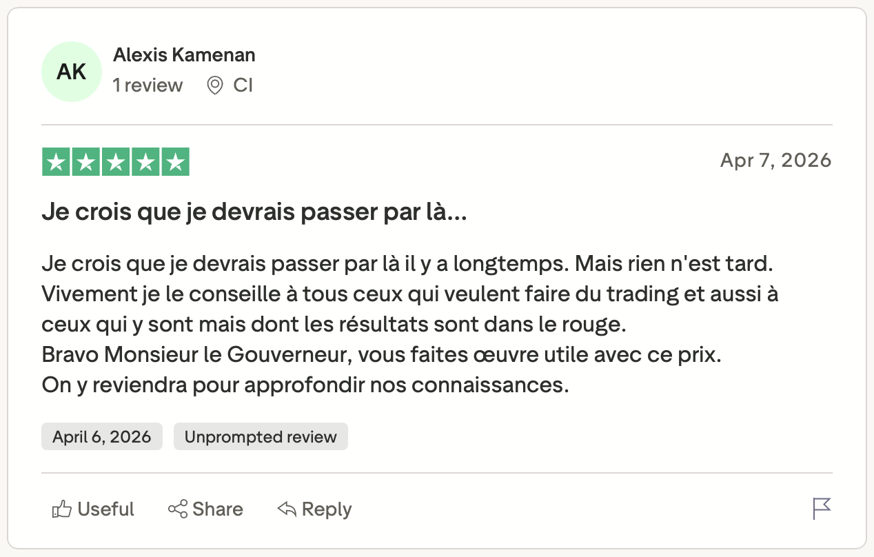 Parce que notre programme s’appuie sur une méthode structurée, un cadre clair et un accompagnement qui permettent à de nombreux traders de progresser durablement.